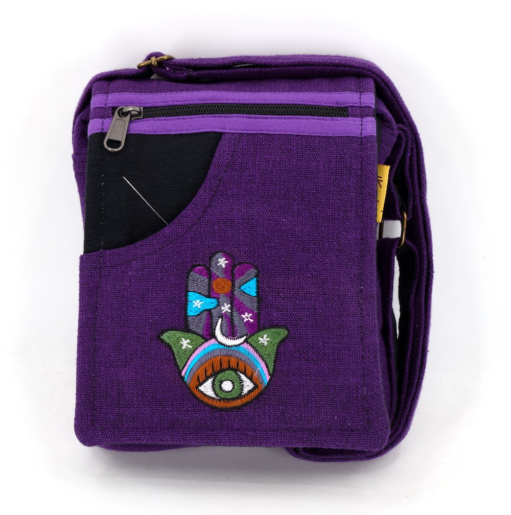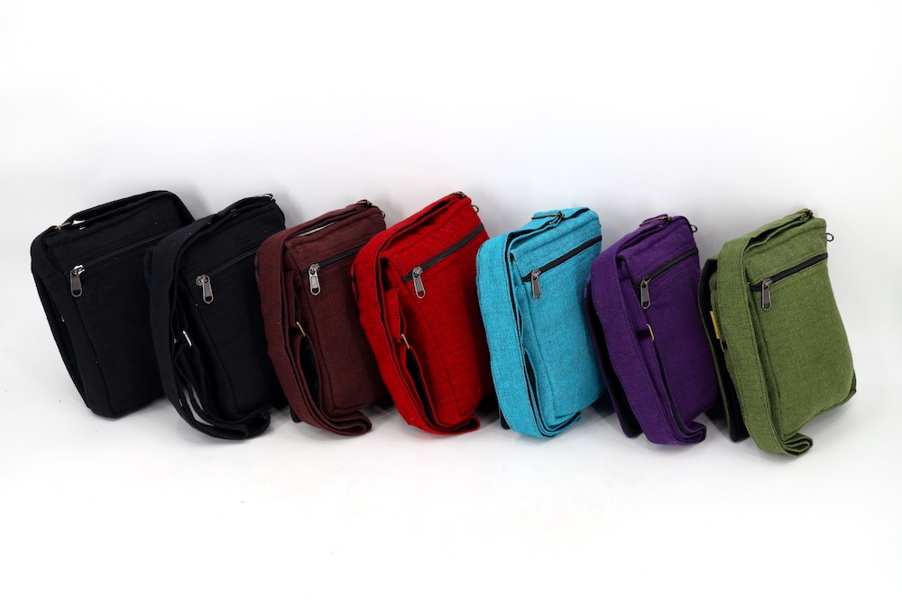 The beautiful Hand-Woven Cotton Travel bag is hand made in Nepal with pure 100% organic Himalaya Cotton. This modern Mushroom Embroidery Cotton passport bag is supremely versatile and fashionable. This bag features are it has two compartments with zippers and it has adjustable strap with outside two pockets in the front and in the main pocket above with a zipper. It is a fair trade made product.