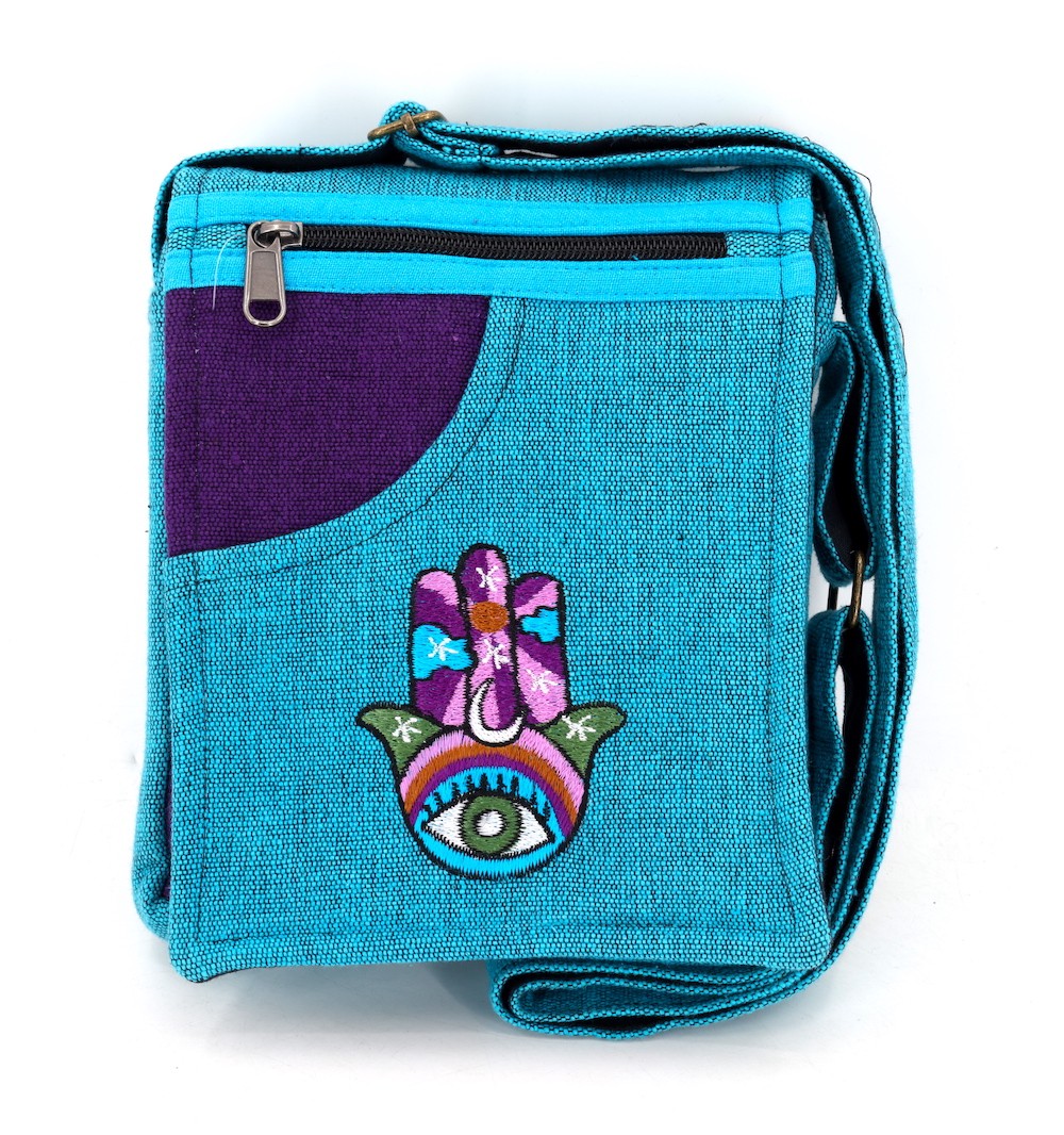 The beautiful Hand-Woven Cotton Travel bag is hand made in Nepal with pure 100% organic Himalaya Cotton. This modern Mushroom Embroidery Cotton passport bag is supremely versatile and fashionable. This bag features are it has two compartments with zippers and it has adjustable strap with outside two pockets in the front and in the main pocket above with a zipper. It is a fair trade made product.