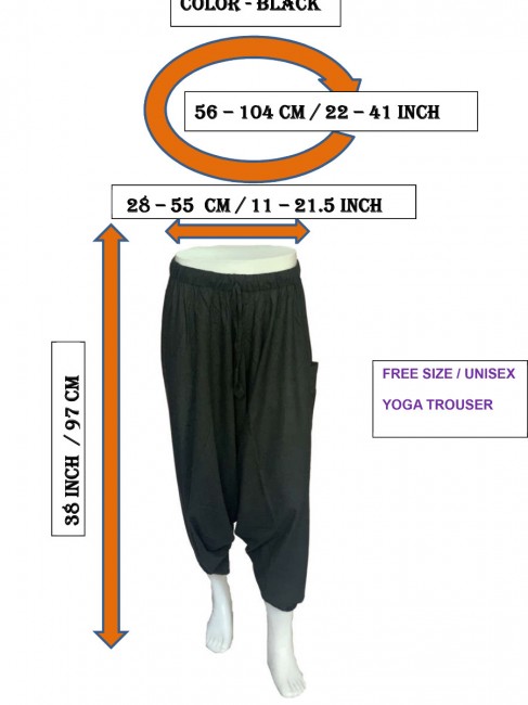 Harem pants, Yoga Trouser, the perfect festival trousers, super baggy in a hippie style and comfortable for yoga, dance and lounging around. These are Unisex Pants so can be wearable for Women, Girls, Boys. FREE SIZE FITS TO ALL (up to 56 - 104 CM Waist) and it has 97 cm length.