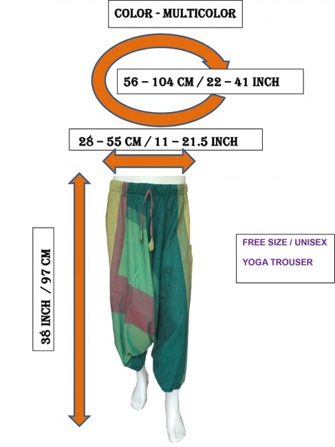 Harem pants, Yoga Trouser, the perfect festival trousers, super baggy in a hippie style and comfortable for yoga, dance and lounging around. These are Unisex Pants so can be wearable for Women, Girls, Boys. FREE SIZE FITS TO ALL (up to 56 - 104 CM Waist) and it has 97 cm length.