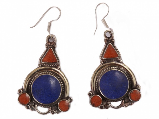 The authentic and beautiful handmade German silver earring mixed with turquoise polished stone and garnet polished stone. These earrings are both whimsical and fashionable also these earrings are authentic reflection of the ancient cultures of Nepal. From simple, classic styles to unique cocktail earrings and these styles of earring fit for any occasion. These earrings are crafted by using only simple hand tools and perfected silver pieces inset with quality gemstones. These earring unique and exotic design makes you the highlight of any crowd.