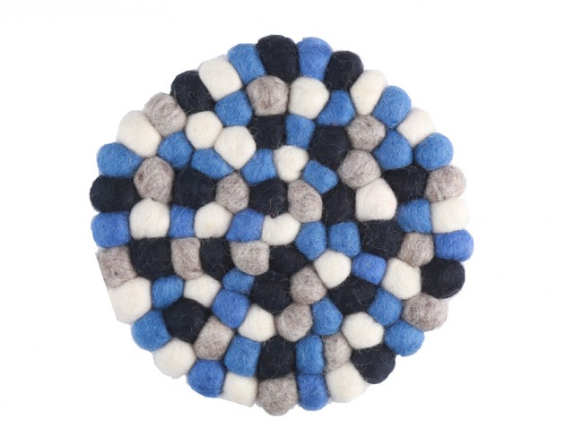 This multicolored felt ball hot pad (Trivet) is beautiful and functional. Brighten up your kitchen with this sturdy piece of handmade art! Each ball is felted by hand and strung tightly to create this piece. Although the hot pad is useful to protect your wood tables from getting burned by hot pans, some prefer this lovely piece as a wall decoration. The felt trivet measuring 20 cm in diameter is made of felt balls hand sewn together for durability. 100% felt wool balls. It’s Washing machine friendly. This is fair trade product and made.