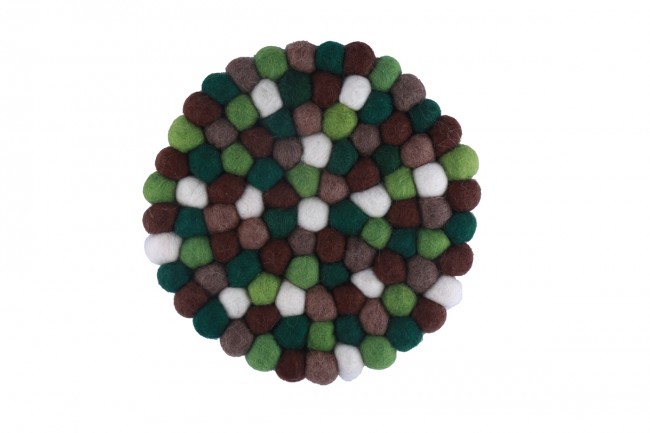 This multi colored felt ball hot pad (Trivet) is beautiful and functional. Brighten up your kitchen with this sturdy piece of handmade art! Each ball is felted by hand and strung tightly to create this piece. Although the hot pad is useful to protect your wood tables from getting burned by hot pans, some prefer this lovely piece as a wall decoration. The felt trivet measuring 20 cm in diameter is made of felt balls hand sewn together for durability. 100% felt wool balls. It’s Washing machine friendly. This is fair trade product and made.