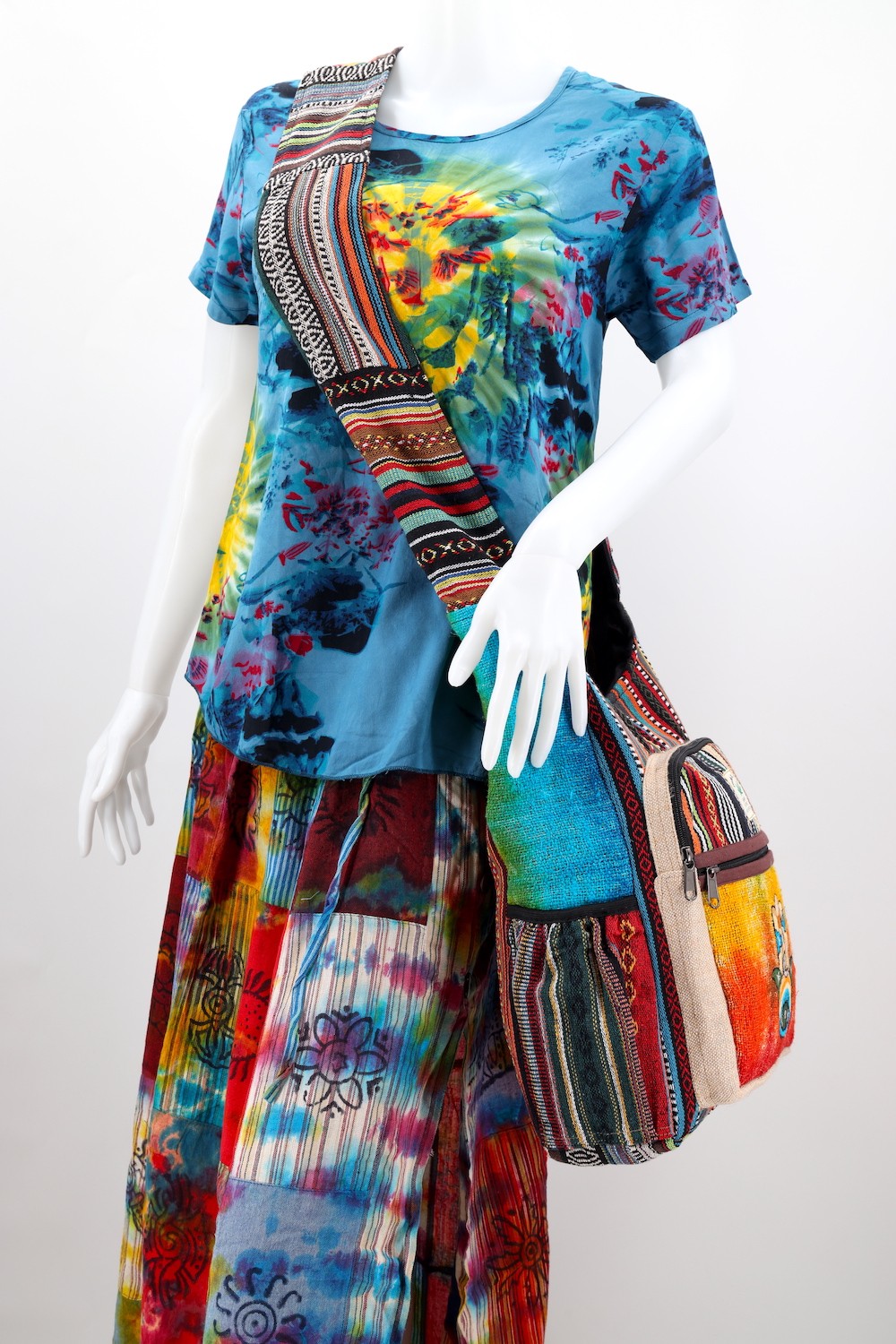 A versatile and beautiful humsa embroidery colorful 100% Natural Handwoven Hemp stitched by talented artisans in Himalaya range of Nepal. Purchasing means supporting underprivileged Nepalese communities who help make these bags.