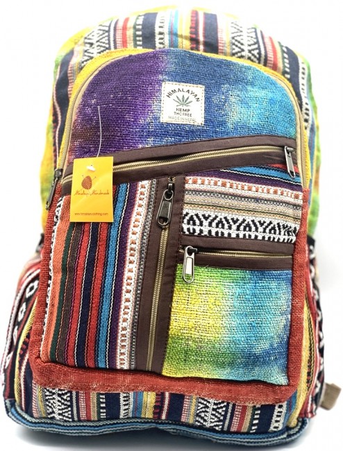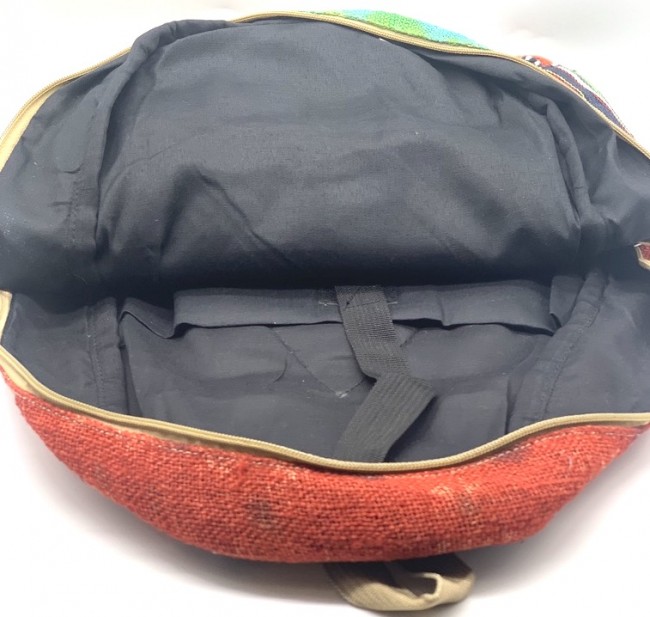 • At Himalaya Handmade we are known for creating the modern Large Hemp backpacks that are now available in profusion of design and colors. Our Large backpack with multicolor Aztec pattern is made from eco-friendly natural hand-woven hemp and cotton fabric and it is beautifully handcrafted in Nepal, they are high quality and this backpack has everything you need. You will not find higher quality anywhere else. All of our bags are sourced from the mountainous regions of Nepal and are all 100% Handmade. This backpack features are it has a unique multi colored pocket. Handcrafted this Backpack Includes, laptop compartment – fits up to 15 inch, 4 separate zippered compartments with 2 pockets, 2 water bottle holders, extremely strong construction, strong original two metal zippers on main compartment, soft padded straps and made from 100% Hemp, the entire bag is extremely strong but also breathable. Color of these bag will not be exact because arrangement of the pattern and these bags are handmade so in color can be slightly different. Pictures color are just example. Every bag is handmade and therefore unique.