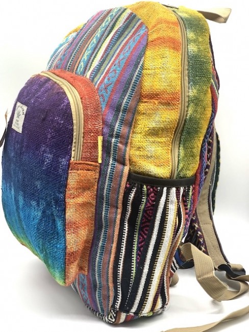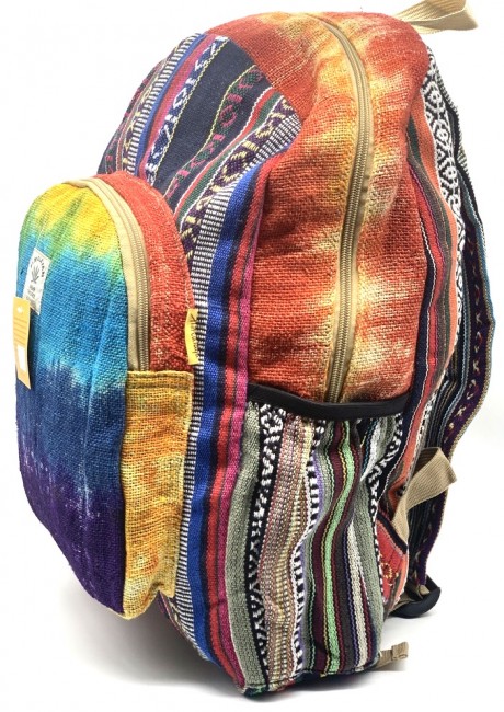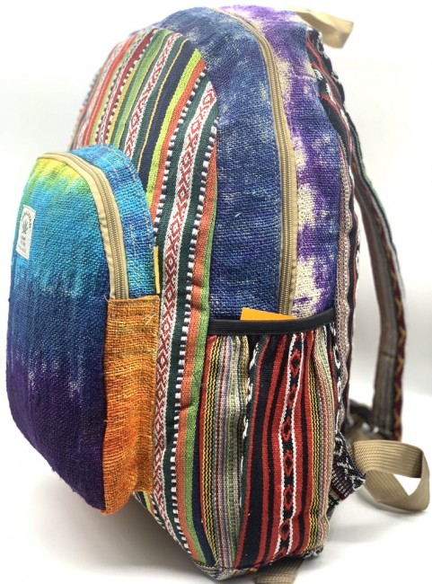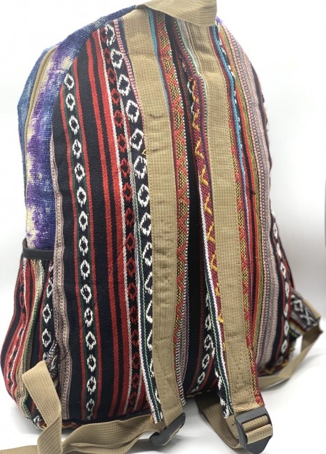 At Himalaya Handmade we are known for creating the modern Large Hemp backpacks that are now available in profusion of design and colors. Our Large backpack with multicolor Aztec pattern is made from eco-friendly natural hand-woven hemp and cotton fabric and it is beautifully handcrafted in Nepal, they are high quality and this backpack has everything you need. You will not find higher quality anywhere else. All of our bags are sourced from the mountainous regions of Nepal and are all 100% Handmade. This backpack features are it has a unique multi colored pocket. Handcrafted this Backpack Includes, laptop compartment – fits up to 15 inch, 4 separate zippered compartments with 2 pockets, 2 water bottle holders, extremely strong construction, strong original two metal zippers on main compartment, soft padded straps and made from 100% Hemp, the entire bag is extremely strong but also breathable. Color of these bag will not be exact because arrangement of the pattern and these bags are handmade so in color can be slightly different. Pictures color are just example. Every bag is handmade and therefore unique.
