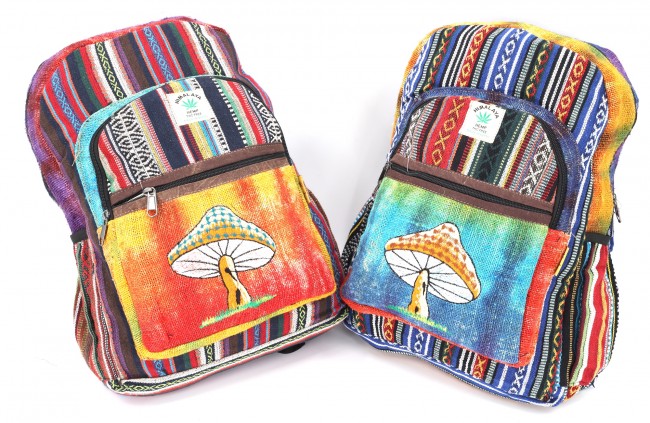 Unique Design Mushroom Hand Embroidery with double Stitched highest quality Himalaya Hemp and double zipper with fully adjustable shoulder straps one size fits all.