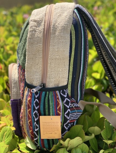 • At Himalaya Handmade we are known for creating the modern Mini hemp backpacks that are now available in profusion of design and colors. Our Mini backpack with multicolor Aztec pattern is made from eco-friendly natural hand-woven hemp and cotton fabric and it is beautifully handcrafted in Nepal, they are high quality and this backpack has everything you need. You will not find higher quality anywhere else. All of our bags are sourced from the mountainous regions of Nepal and are all 100% Handmade. This backpack features are it has a unique multi colored pocket. Handcrafted this Backpack Includes, laptop compartment – fits up to 13 inch, 4 separate zippered compartments with 2 pockets, 2 water bottle holders, extremely strong construction, strong original two metal zippers on main compartment, soft padded straps and made from 100% Hemp, the entire bag is extremely strong but also breathable. Color of these bag will not be exact because arrangement of the pattern and these bags are handmade so in color can be slightly different. Pictures color are just example. Every bag is handmade and therefore unique.