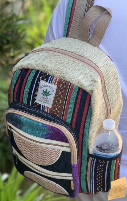• At Himalaya Handmade we are known for creating the modern Mini hemp backpacks that are now available in profusion of design and colors. Our Mini backpack with multicolor Aztec pattern is made from eco-friendly natural hand-woven hemp and cotton fabric and it is beautifully handcrafted in Nepal, they are high quality and this backpack has everything you need. You will not find higher quality anywhere else. All of our bags are sourced from the mountainous regions of Nepal and are all 100% Handmade. This backpack features are it has a unique multi colored pocket. Handcrafted this Backpack Includes, laptop compartment – fits up to 13 inch, 4 separate zippered compartments with 2 pockets, 2 water bottle holders, extremely strong construction, strong original two metal zippers on main compartment, soft padded straps and made from 100% Hemp, the entire bag is extremely strong but also breathable. Color of these bag will not be exact because arrangement of the pattern and these bags are handmade so in color can be slightly different. Pictures color are just example. Every bag is handmade and therefore unique.