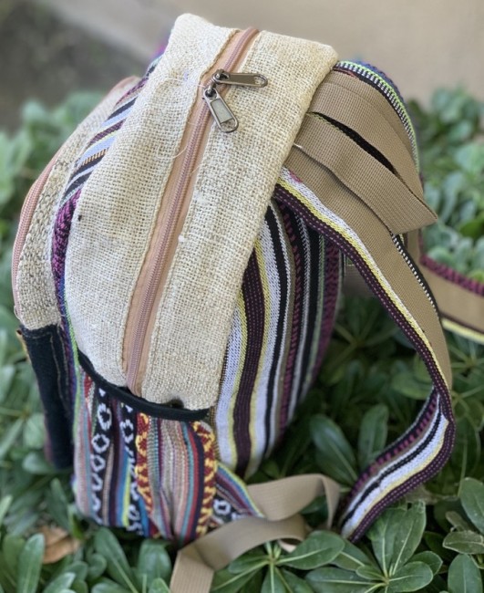 •At Himalaya Handmade we are known for creating the modern Mini hemp backpacks that are now available in profusion of design and colors. Our Mini backpack with multicolor Aztec pattern is made from eco-friendly natural hand-woven hemp and cotton fabric and it is beautifully handcrafted in Nepal, they are high quality and this backpack has everything you need. You will not find higher quality anywhere else. All of our bags are sourced from the mountainous regions of Nepal and are all 100% Handmade. This backpack features are it has a unique multi colored pocket. Handcrafted this Backpack Includes, laptop compartment – fits up to 13 inch, 4 separate zippered compartments with 2 pockets, 2 water bottle holders, extremely strong construction, strong original two metal zippers on main compartment, soft padded straps and made from 100% Hemp, the entire bag is extremely strong but also breathable. Color of these bag will not be exact because arrangement of the pattern and these bags are handmade so in color can be slightly different. Pictures color are just example. Every bag is handmade and therefore unique