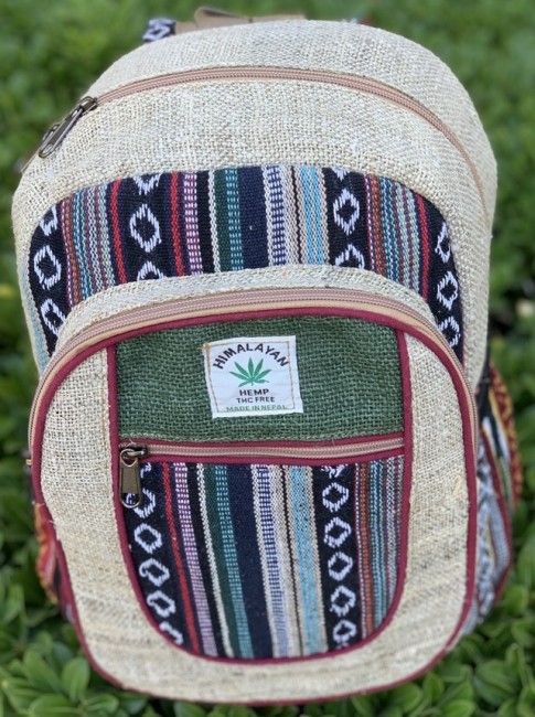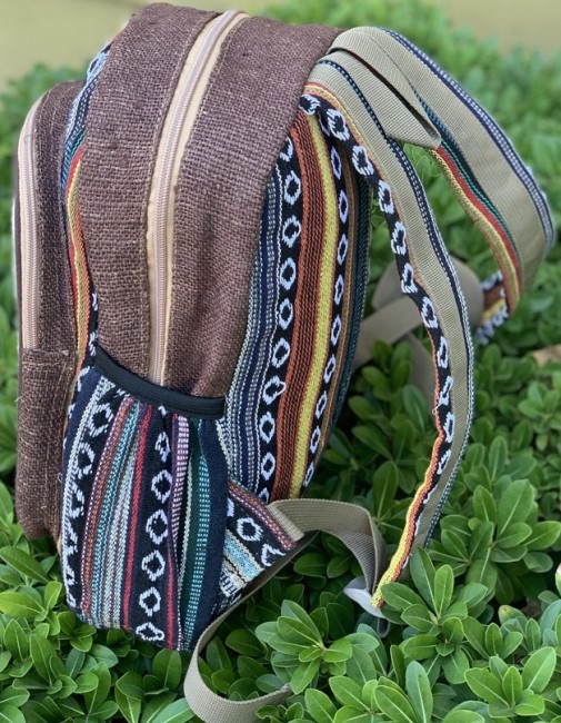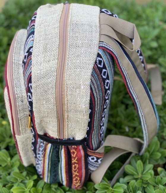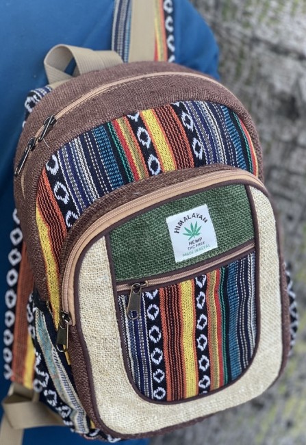 - At Himalaya Handmade we are known for creating the modern Mini hemp backpacks that are now available in profusion of design and colors. Our Mini backpack with multicolor Aztec pattern is made from eco-friendly natural hand-woven hemp and cotton fabric and it is beautifully handcrafted in Nepal, they are high quality and this backpack has everything you need. You will not find higher quality anywhere else. All of our bags are sourced from the mountainous regions of Nepal and are all 100% Handmade. This backpack features are it has a unique multi colored pocket. Handcrafted this Backpack Includes, laptop compartment – fits up to 13 inch, 4 separate zippered compartments with 2 pockets, 2 water bottle holders, extremely strong construction, strong original two metal zippers on main compartment, soft padded straps and made from 100% Hemp, the entire bag is extremely strong but also breathable. Color of these bag will not be exact because arrangement of the pattern and these bags are handmade so in color can be slightly different. Pictures color are just example. Every bag is handmade and therefore unique.