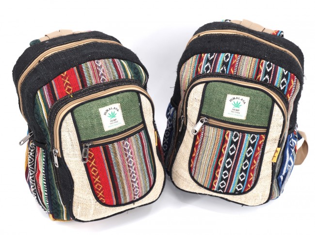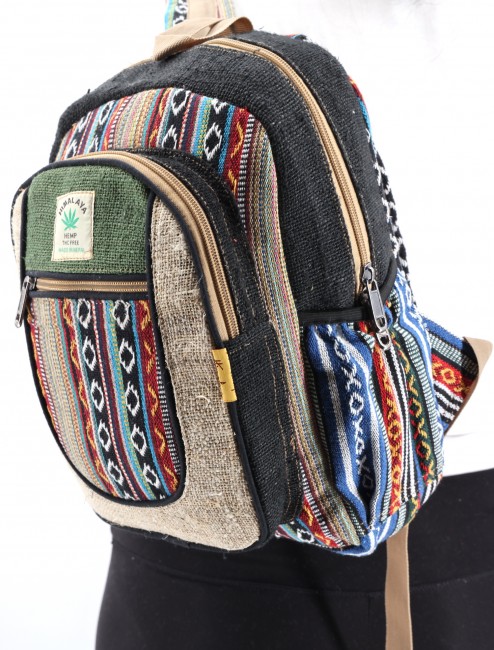 - At Himalaya Handmade we are known for creating the modern Mini hemp backpacks that are now available in profusion of design and colors. Our Mini backpack with multicolor Aztec pattern is made from eco-friendly natural hand-woven hemp and cotton fabric and it is beautifully handcrafted in Nepal, they are high quality and this backpack has everything you need. You will not find higher quality anywhere else. All of our bags are sourced from the mountainous regions of Nepal and are all 100% Handmade. This backpack features are it has a unique multi colored pocket. Handcrafted this Backpack Includes, laptop compartment – fits up to 13 inch, 4 separate zippered compartments with 2 pockets, 2 water bottle holders, extremely strong construction, strong original two metal zippers on main compartment, soft padded straps and made from 100% Hemp, the entire bag is extremely strong but also breathable. Color of these bag will not be exact because arrangement of the pattern and these bags are handmade so in color can be slightly different. Pictures color are just example. Every bag is handmade and therefore unique.