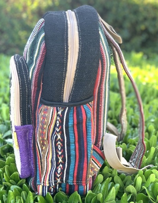 • At Himalaya Handmade we are known for creating the modern Mini hemp backpacks that are now available in profusion of design and colors. Our Mini backpack with multicolor Aztec pattern is made from eco-friendly natural hand-woven hemp and cotton fabric and it is beautifully handcrafted in Nepal, they are high quality and this backpack has everything you need. You will not find higher quality anywhere else. All of our bags are sourced from the mountainous regions of Nepal and are all 100% Handmade. This backpack features are it has a unique multi colored pocket. Handcrafted this Backpack Includes, laptop compartment – fits up to 13 inch, 4 separate zippered compartments with 2 pockets, 2 water bottle holders, extremely strong construction, strong original two metal zippers on main compartment, soft padded straps and made from 100% Hemp, the entire bag is extremely strong but also breathable. Color of these bag will not be exact because arrangement of the pattern and these bags are handmade so in color can be slightly different. Pictures color are just example. Every bag is handmade and therefore unique.