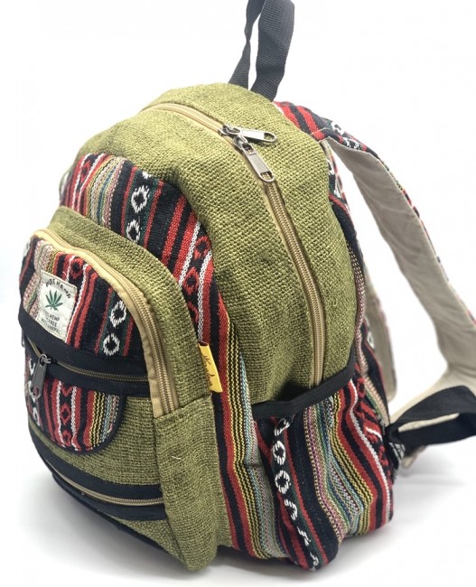 Double Stitched with the highest quality Himalaya Hemp and double zipper with fully adjustable shoulder straps one size fits all. Dimensions: 12" x 10" x 4" inch / 30 x 25 x 10 cm.