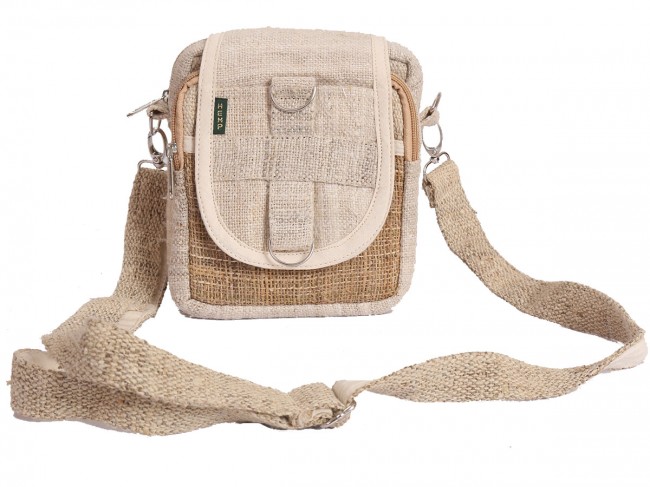 The beautiful hemp Travel bag is hand made in Nepal with pure 100% organic core hemp. This modern hemp passport bag is supremely versatile and fashionable. This bag features are it has two compartments with zippers and it has adjustable strap with outside two pockets in the front and in the main pocket above with a zipper. It is fair trade product.