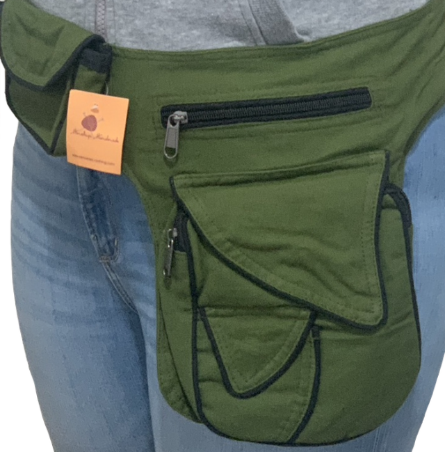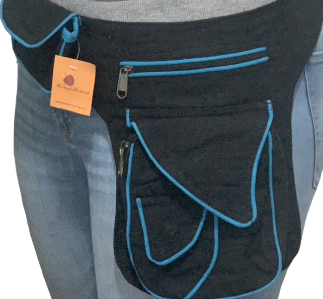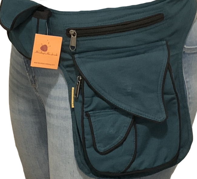 100% pure cotton patch money belt handmade in Nepal. This product can be use by both man and women. This bag has charming features, it is practical and versatile because it can be belt bag/fanny pack /shoulder bag, it has 3 pocket with zippers, main pocket has magnetic button, 1 pocket is hidden on the back side, small pocket on the outside also has magnetic button, the belt is adjustable which can make shorter and longer as well. It is fair trade product.