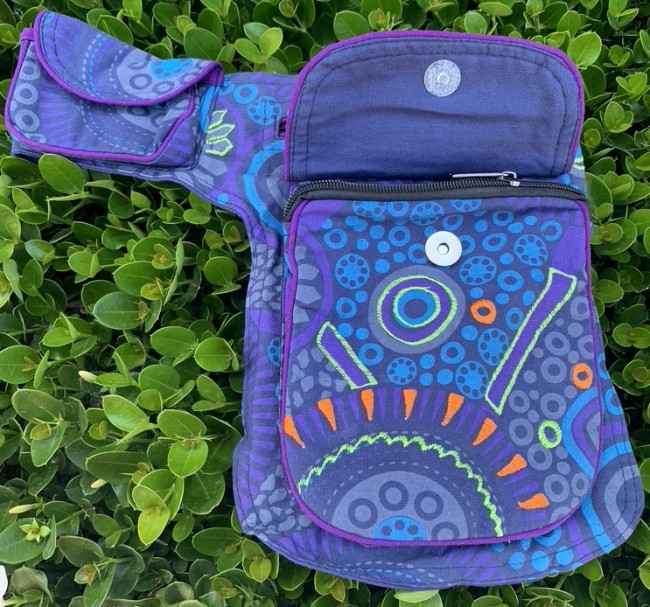 100% pure cotton colorful money belt handmade in Nepal. This product can be use by both man and women. This bag has charming features, it has beautiful print and flower embroideries,it is practical and versatile because it can be belt bag/fanny pack /shoulder bag, it has 3 pocket with zippers, main pocket has magnetic button, 1 pocket is hidden on the back side, small pocket on the outside also has magnetic button, the belt is adjustable which can make shorter and longer as well. It is fair trade product.