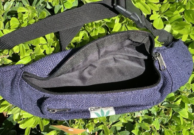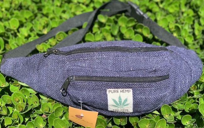 100% pure Himalaya Hemp Blue Color money belt handmade in Nepal. This product can be use by both men and women west or can be worn lower on the hips. This bag has charming features, it is practical and versatile because it can be belt bag/fanny pack /shoulder bag, it has 3 pockets with zippers, the belt is adjustable 32 - 45 inch which can make shorter and longer as well. It is fair trade product. Size: 32x14x10 cm (12.5x5.5x4 inches)