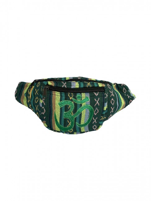 100% pure Hand woven Gheri Cotton Multi Black Color Om Hand Embroidary money belt (Fanny Pack) handmade in Nepal. This product can be use by both men and women west or can be worn lower on the hips. This bag has charming features, it is practical and versatile because it can be belt bag/fanny pack /shoulder bag, it has 3 pockets with zippers, the belt is adjustable 32 - 45 inch which can make shorter and longer as well. It is fair trade product. Size: 29 x14x10 cm (12.5x5.5x4 inches)