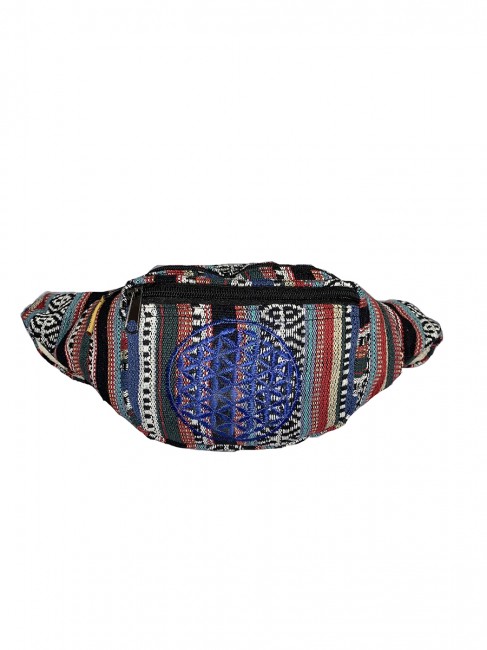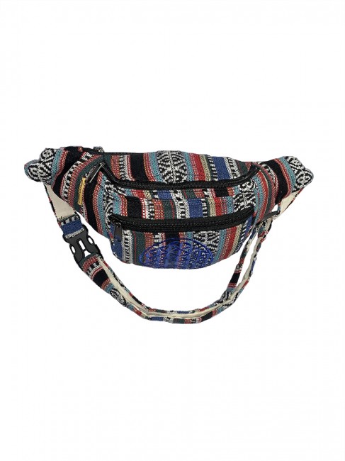 100% pure Hand woven Gheri Cotton Multi Black Color Life of Flower Hand Embroidary money belt (Fanny Pack) handmade in Nepal. This product can be use by both men and women west or can be worn lower on the hips. This bag has charming features, it is practical and versatile because it can be belt bag/fanny pack /shoulder bag, it has 3 pockets with zippers, the belt is adjustable 32 - 45 inch which can make shorter and longer as well. It is fair trade product. Size: 29 x14x10 cm (12.5x5.5x4 inches)