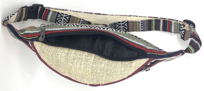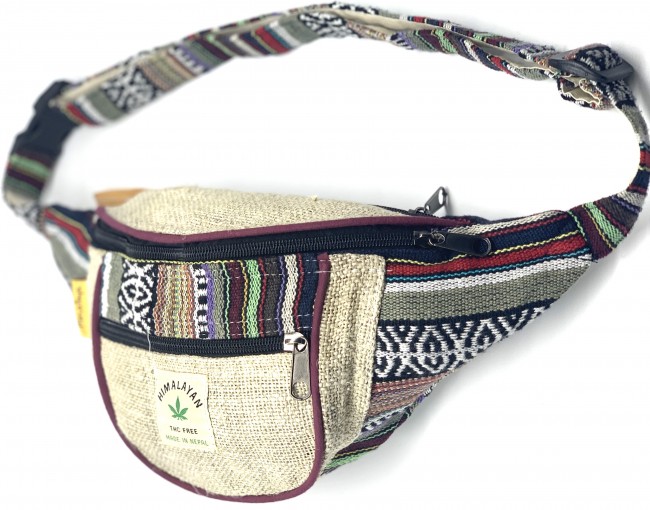 100% Pure Himalaya Hemp money belt Bag handmade in Nepal. This product can be use by both men and women west or can be worn lower on the hips. This bag has charming features, it is practical and versatile because it can be belt bag/fanny pack /shoulder bag, it has 3 pockets with zippers, the belt is adjustable 32 - 45 inch which can make shorter and longer as well. It is fair trade product.
