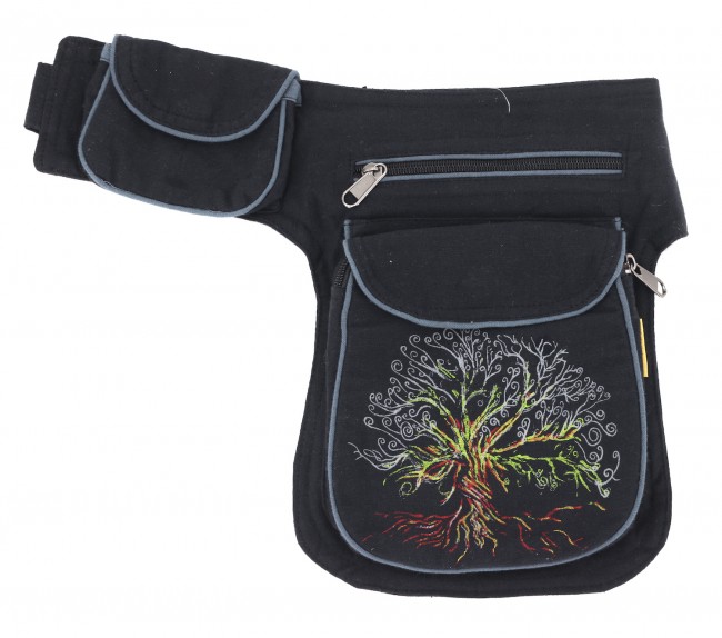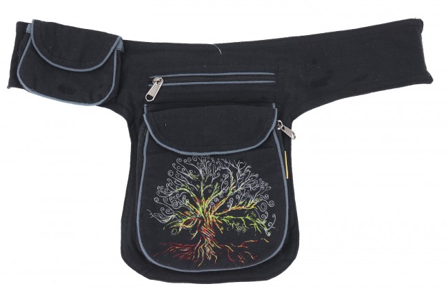 100% pure cotton Tree of Life designed Fanny Pack is handmade in Nepal. This product can be used by women or men and is usually worn lower on the hips. This bag has charming features, it has a beautiful print of the Tree of life, it is practical and versatile because it can be used as a belt bag, fanny pack as well as a shoulder bag, it has 3 pockets in the front with zippers and additionally all three pockets come equipped with a zipper, A pocket is hidden on the back side, the belt is adjustable from 29 - 40 inches which can be made shorter and longer to tend to your needs, and the belt also includes a small compartment which is big enough to fit coins and money. This is a Fair-Trade product.