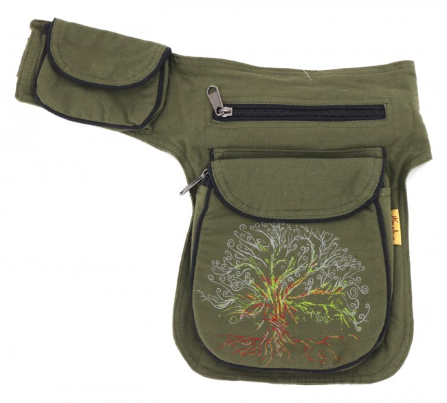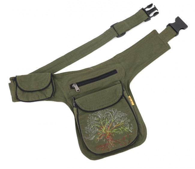 100% pure cotton Tree of Life designed Fanny Pack is handmade in Nepal. This product can be used by women or men and is usually worn lower on the hips. This bag has charming features, it has a beautiful print of the Tree of life, it is practical and versatile because it can be used as a belt bag, fanny pack as well as a shoulder bag, it has 3 pockets in the front with zippers and additionally all three pockets come equipped with a zipper, A pocket is hidden on the back side, the belt is adjustable from 29 - 40 inches which can be made shorter and longer to tend to your needs, and the belt also includes a small compartment which is big enough to fit coins and money. This is a Fair-Trade product.