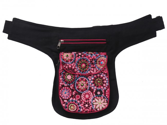 100% pure cotton colorful money belt handmade in Nepal. This product can be use by both man and women. This bag has charming features, it has beautiful print and flower embroideries,it is practical and versatile because it can be belt bag/fanny pack /shoulder bag, it has 3 pocket with zippers, main pocket has magnetic button, 1 pocket is hidden on the back side, small pocket on the outside also has magnetic button, the belt is adjustable which can make shorter and longer as well. It is fair trade product.