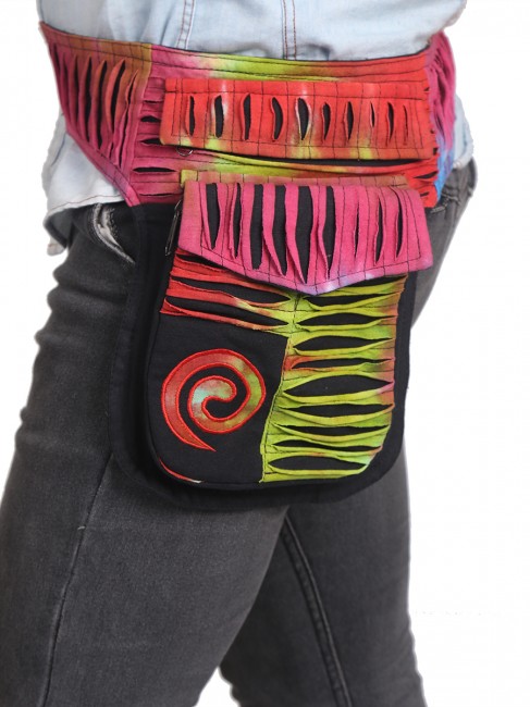 100% pure cotton colorful razor cut design money belt handmade in Nepal. This product can be use by both man and women. This bag has charming features, it has beautiful spiral embroideries,it is practical and versatile because it can be belt bag/fanny pack /shoulder bag, it has 3 pocket with zippers, main pocket has magnetic button, 1 pocket is hidden on the back side, small pocket on the outside also has magnetic button, the belt is adjustable which can make shorter and longer as well. It is fair trade product.