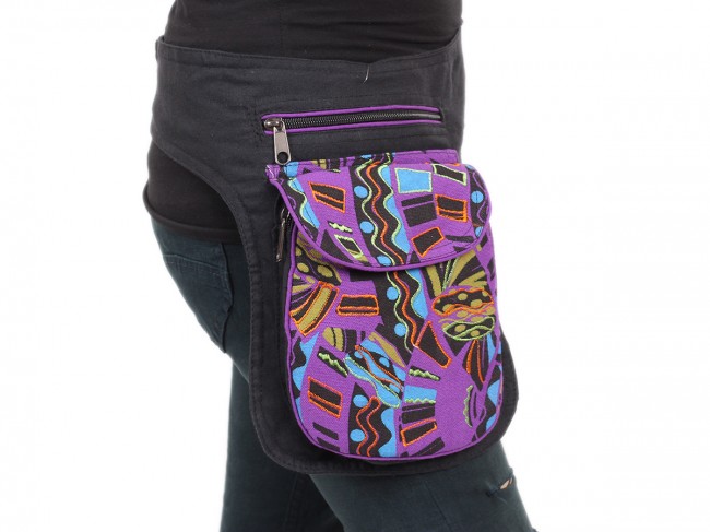100% pure cotton colorful money belt handmade in Nepal. This product can be use by both man and women. This bag has charming features, it has beautiful embroideries,it is practical and versatile because it can be belt bag/fanny pack /shoulder bag, it has 3 pocket with zippers, main pocket has magnetic button, 1 pocket is hidden on the back side, small pocket on the outside also has magnetic button, the belt is adjustable which can make shorter and longer as well. It is fair trade product.