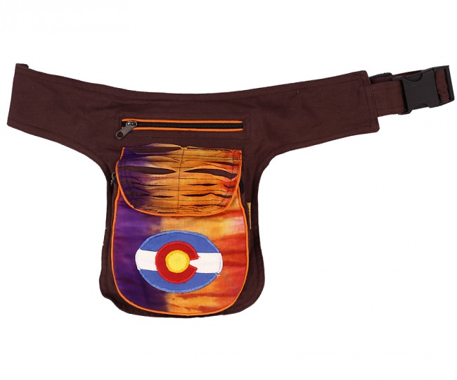 100% pure cotton colorful razor cut design money belt handmade in Nepal. This product can be use by both man and women. This bag has charming features, it has beautiful Colorado flag embroideries,it is practical and versatile because it can be belt bag/fanny pack /shoulder bag, it has 3 pocket with zippers, main pocket has magnetic button, 1 pocket is hidden on the back side, small pocket on the outside also has magnetic button, the belt is adjustable which can make shorter and longer as well. It is fair trade product.