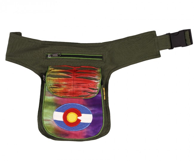 100% pure cotton colorful razor cut design money belt handmade in Nepal. This product can be use by both man and women. This bag has charming features, it has beautiful Colorado flag embroideries,it is practical and versatile because it can be belt bag/fanny pack /shoulder bag, it has 3 pocket with zippers, main pocket has magnetic button, 1 pocket is hidden on the back side, small pocket on the outside also has magnetic button, the belt is adjustable which can make shorter and longer as well. It is fair trade product.
