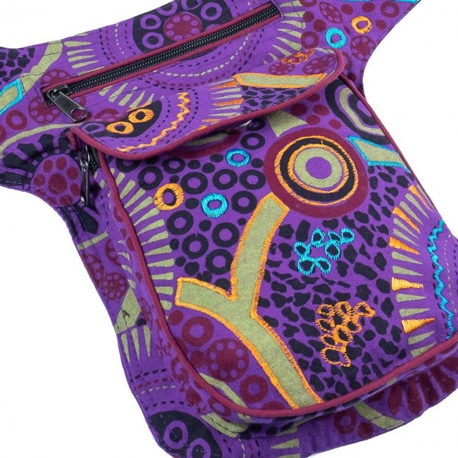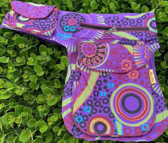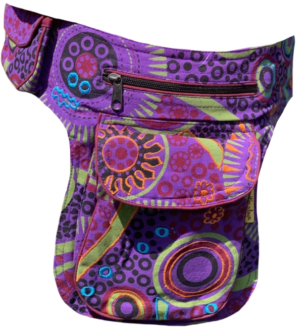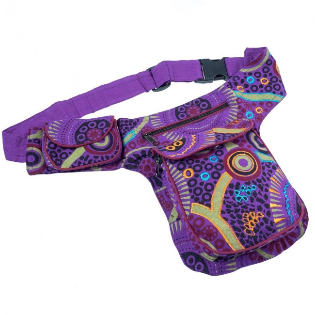 100% pure cotton colorful money belt handmade in Nepal. This product can be use by both man and women. This bag has charming features, it has beautiful print and flower embroideries,it is practical and versatile because it can be belt bag/fanny pack /shoulder bag, it has 3 pocket with zippers, main pocket has magnetic button, 1 pocket is hidden on the back side, small pocket on the outside also has magnetic button, the belt is adjustable which can make shorter and longer as well. It is fair trade product.