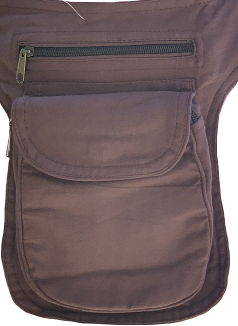 100% pure cotton plain money belt handmade in Nepal. This product can be use by both man and women. This bag has charming features, it is practical and versatile because it can be belt bag/fanny pack /shoulder bag, it has 3 pocket with zippers, main pocket has magnetic button, 1 pocket is hidden on the back side, small pocket on the outside also has magnetic button, the belt is adjustable which can make shorter and longer as well. It is fair trade product.