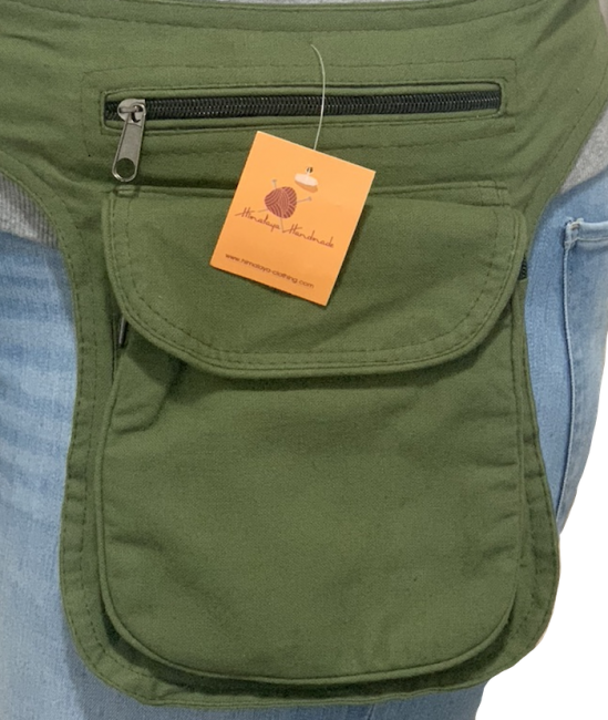100% pure cotton plain money belt handmade in Nepal. This product can be use by both man and women. This bag has charming features, it is practical and versatile because it can be belt bag/fanny pack /shoulder bag, it has 3 pocket with zippers, main pocket has magnetic button, 1 pocket is hidden on the back side, small pocket on the outside also has magnetic button, the belt is adjustable which can make shorter and longer as well. It is fair trade product.