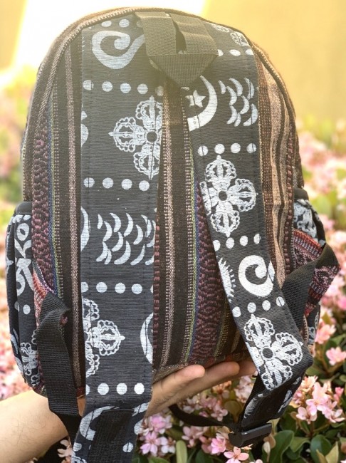 • At Himalaya Handmade we are known for creating the modern Mini Cotton backpacks that are now available in profusion of design and colors. Our Mini backpack with multicolor Aztec pattern is made from eco-friendly natural hand-woven Gheri Cotton fabric and it is beautifully handcrafted in Nepal, they are high quality and this backpack has everything you need. You will not find higher quality anywhere else. All of our bags are sourced from the mountainous regions of Nepal and are all 100% Handmade. This backpack features are it has a unique multi colored pocket. Handcrafted this Backpack Includes, laptop compartment – fits up to large tablet, 4 separate zippered compartments with 2 pockets, 2 water bottle holders, extremely strong construction, strong original two metal zippers on main compartment, soft padded straps and made from 100% Cotton, the entire bag is extremely strong but also breathable. Color of these bag will not be exact because arrangement of the pattern and these bags are handmade so in color can be slightly different. Pictures color are just example. Every bag is handmade and therefore unique.