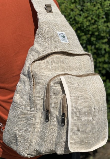 This Core Hemp sling bag crossbody backpack is the perfect replacement for a traditional fanny pack. With the Adjustable strap, this sling bag fits all body types and can be worn over the shoulder across the chest or back. This sling bag features 3 front zipper compartments, 1 inner zipper compartment & inner padding for added safety. The Core Hemp material makes this sling bag very durable with an added urban/sporty appeal.