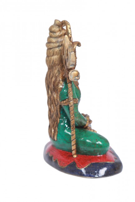 Shiva (or Siva) is one of the Most important gods in the Hindu pantheon and, along with Brahama and Vishnu, is considered a member of the holy trinity (Trimurti) of Hinduism. A intricate character, he may represent goodness, compassion and serve as the Protector. Nevertheless, Shiva is also associated with creation. In Hinduism, the universe is thought to regenerate in cycles (every 2,160,000,000 years). Shiva destroys the universe at the end of each cycle which then allows for a new Creation. Shiva is also the great ascetic, abstaining from all forms of indulgence and pleasure, concentrating rather on meditation as a means to find perfect happiness. He is the most important Hindu god for the Shaivism sect, the patron of Yogis and Brahmins, and also the protector of the Vedas, the sacred texts.  Vibrant & traditional Handmade brass statue of Hindu Deity Lord Shiva with beautiful Turquoise & Coral inlay artwork. Here lord Shiva is seen in form of Yogi- saint sitting on the Lion Base and meditating. This figurine is a true Nepali artisian artwork with fine detailing and colorful embellishments. Shiva is most powerful god in Hindu pantheon & has many forms. Known by many names - Mahadeva, Mahayogi, Pashupati, Nataraja, Bhairava, Vishwanath, Bhava, Bhole Nath - Lord Shiva is perhaps the most complex of Hindu deities. Hindus recognize this by putting his shrine in the temple separate from those of other deities. These statue hand crafted by experienced and skilled artists of Nepal, who have been under in profession since generations.. Our goods are quality controlled and well packed to ensure customer satisfaction.  An eye catching piece- pick it for yourself or gift it to someone special.