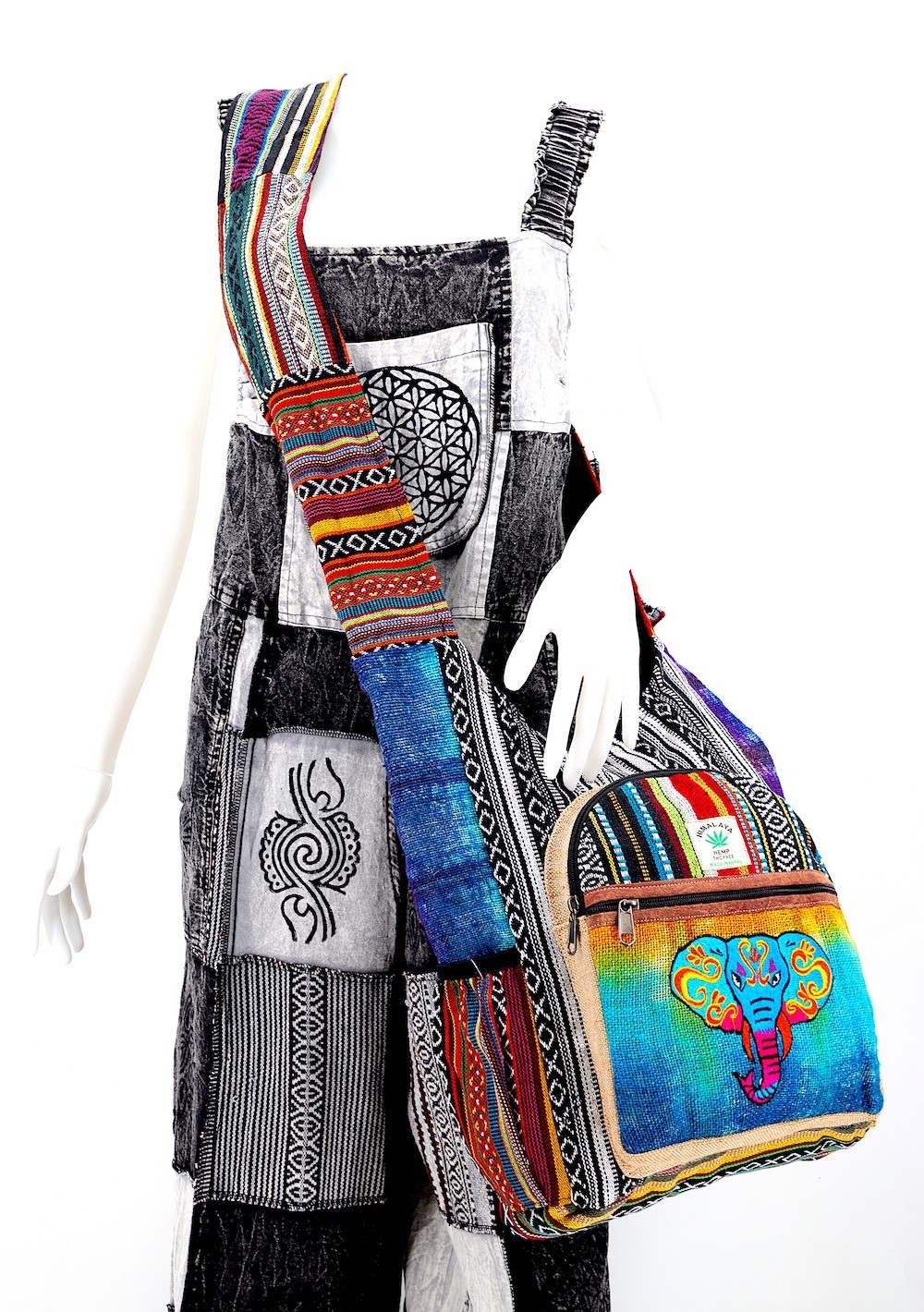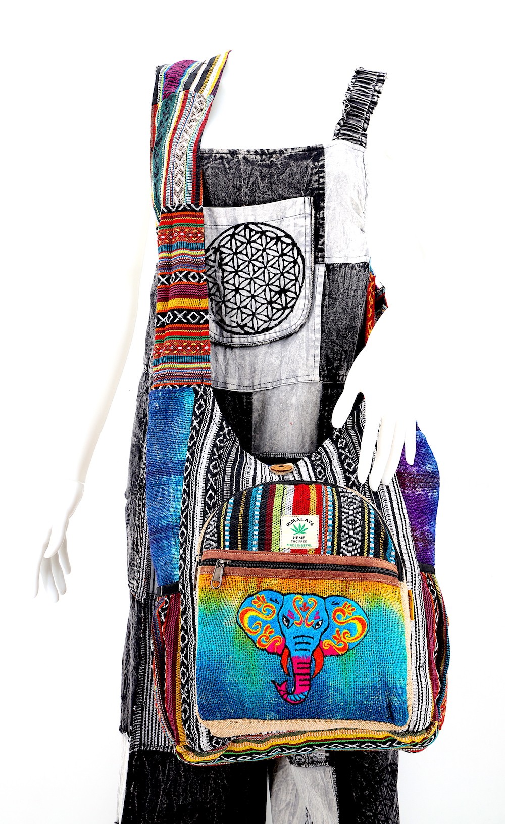 A versatile and beautiful Elephant Hand Embroidered Hemp Crossbody Bag made with 100 percent natural THC-free Himalaya hemp. Stitched and assembled by the most talented artisans in Nepal.