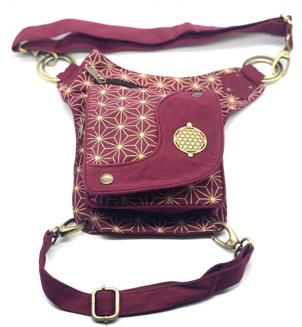 An adjustable hip bag, can be worn around the waist/hip or extend the strap to make it a shoulder bag! Each end of the straps has a large clip, so they can be attached in many different ways depending on your needs. Wearing a skirt? The brass hoops on the front can be used as decoration, or clipping on keychains and charms. The fanny pack also has a thigh strap which contains a clip which can be used as an extra layer of protection that can be worn around your thigh.