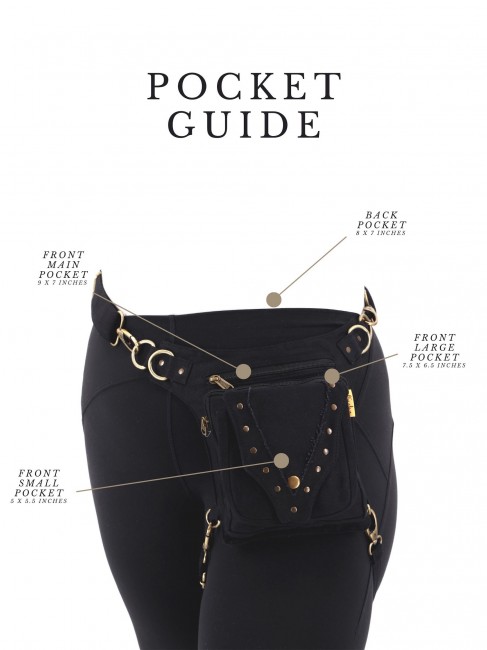 The main large front pocket is wide enough to fit items of all kinds to suit your needs and it measures 7" x 6" and also has a small 6” X 5” zipper pocket in front of it.