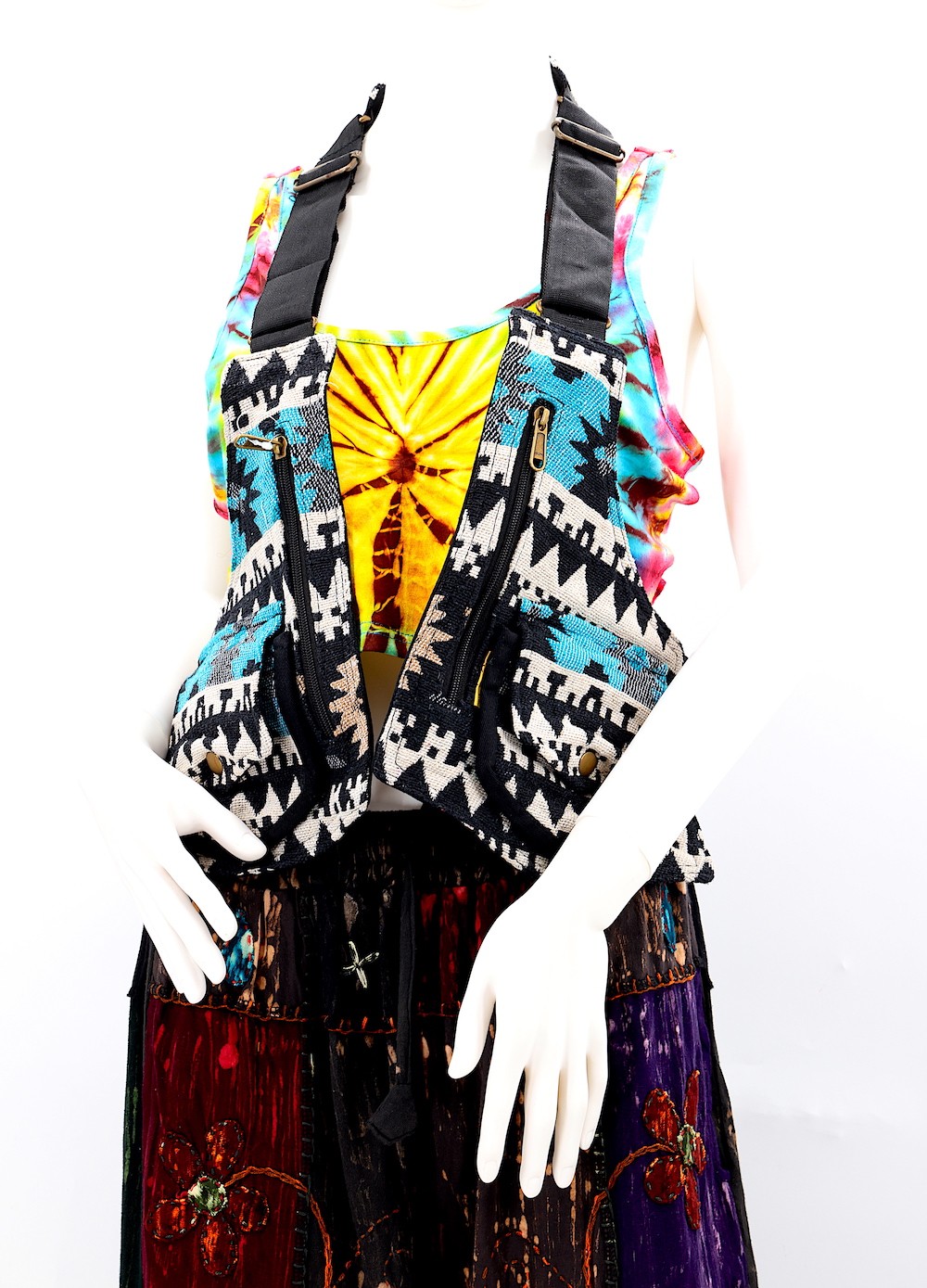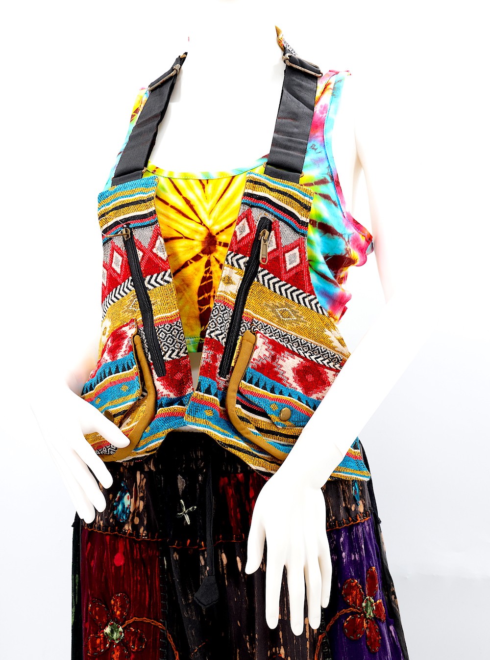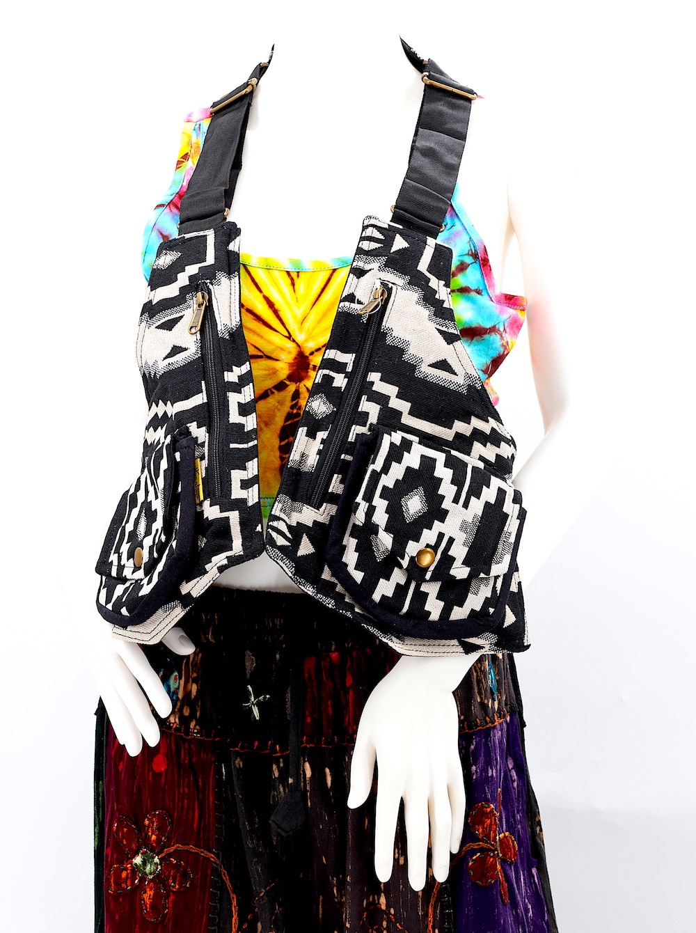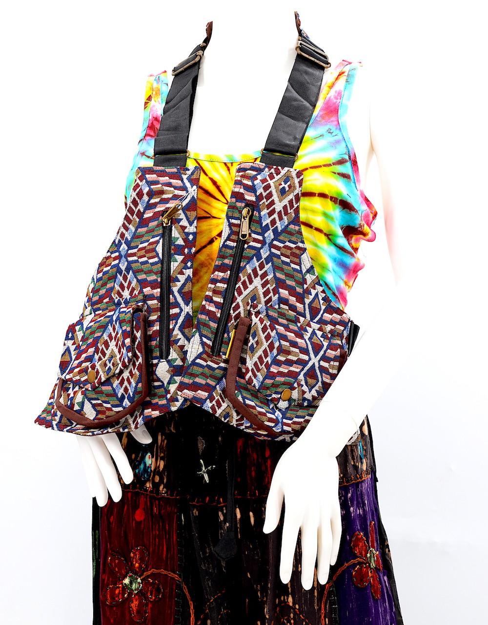 Constructed with precision, this unisex, one-size-fits-all product boasts double stitching for durability and adjustable buckles all around, accommodating various torso sizes. Wear it comfortably as a jacket/ vest, offering you flexibility in style. This unique bag also has an adjustable straps throught the product which provides added security and comfort.