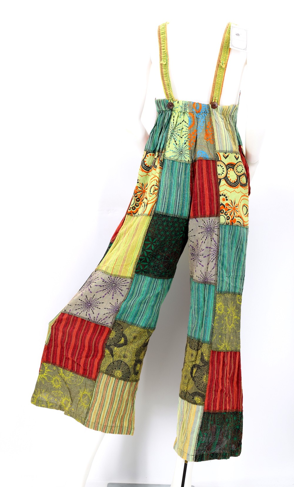 These Unique Hippie Wide Leg Gheri Block Print Multicolor Overlock Patchwork Overalls are crafted from the finest 100% Natural Handwoven Cotton by some of the most skilled artisans. Elevate your style instantly with these extraordinary and highly fashionable Multicolor Patchwork Block Print Overalls that are suitable for almost any occasion, ensuring you look your best every single time.