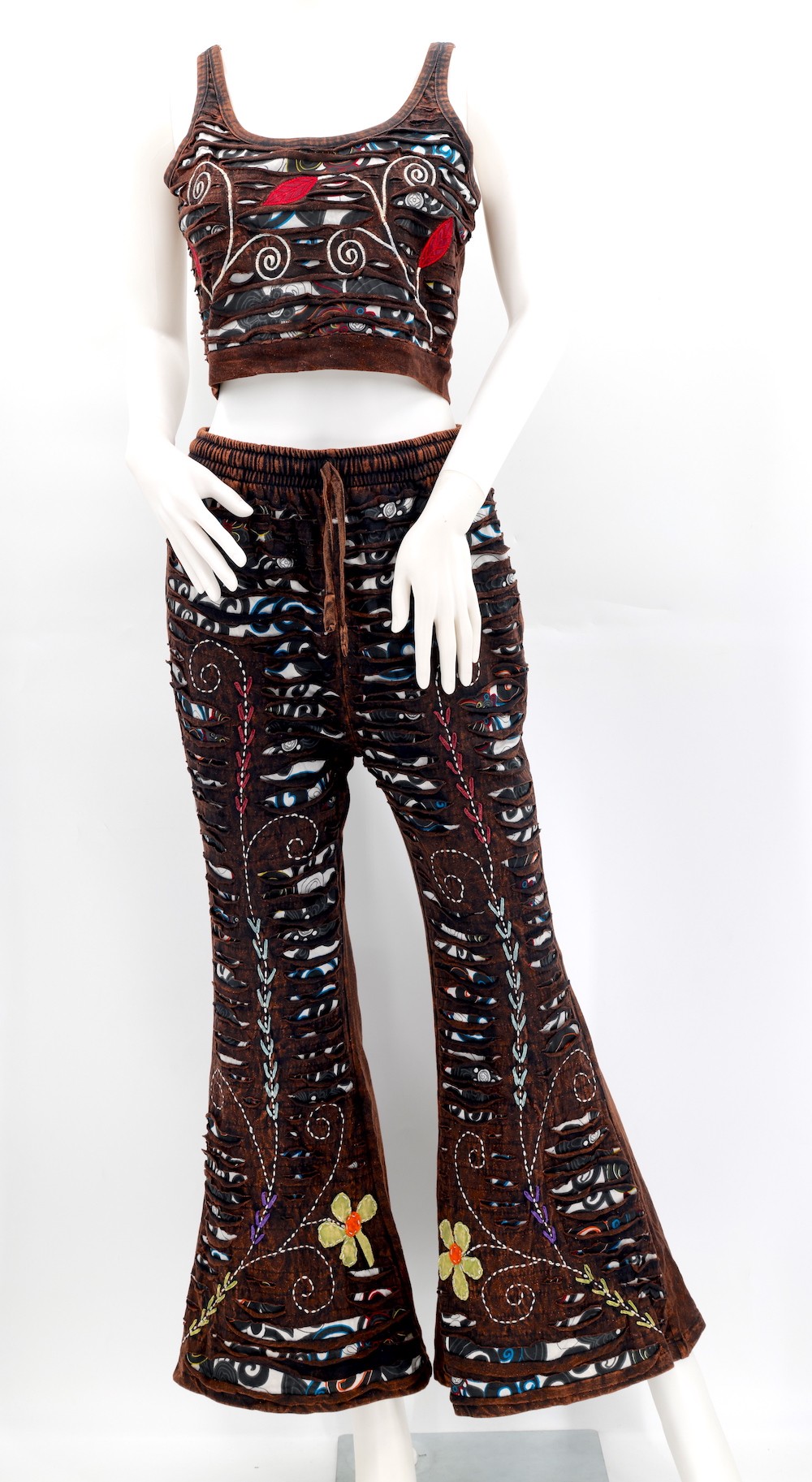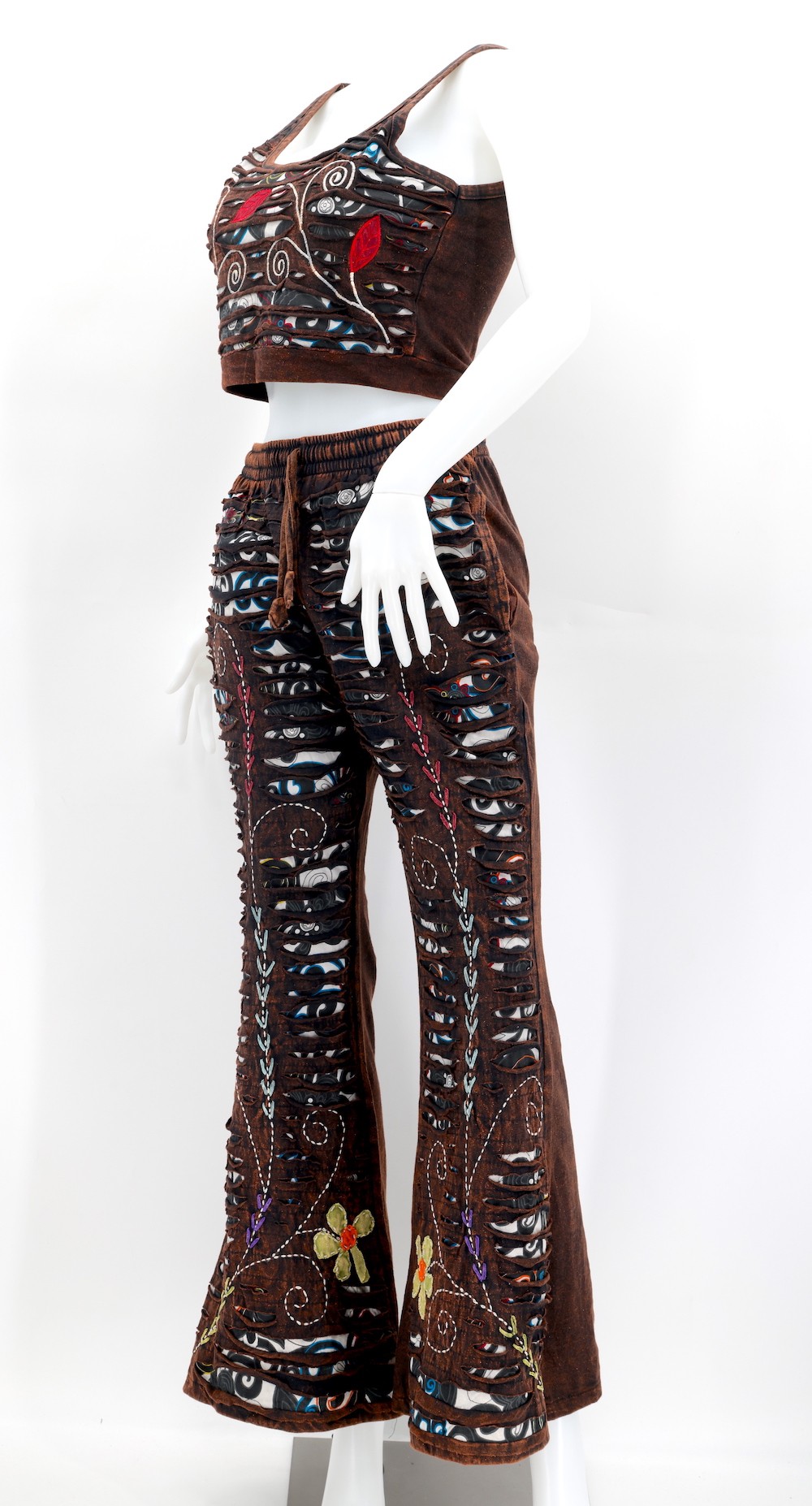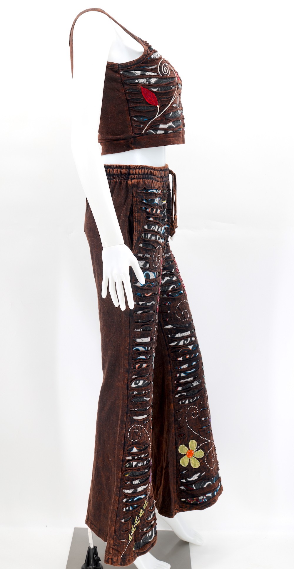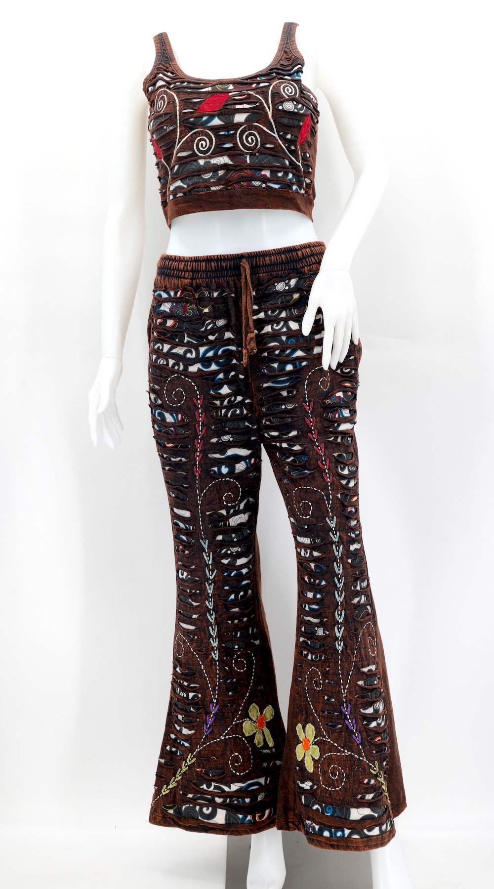 Every clothing item is meticulously handmade, reflecting the care and consideration put into their creation, resulting in unmatched quality. Because our products are handmade, the patchwork colors and patterns on each pair of trousers and tops may vary, making each one unique. The provided image serves as a general representation of the product's appearance.