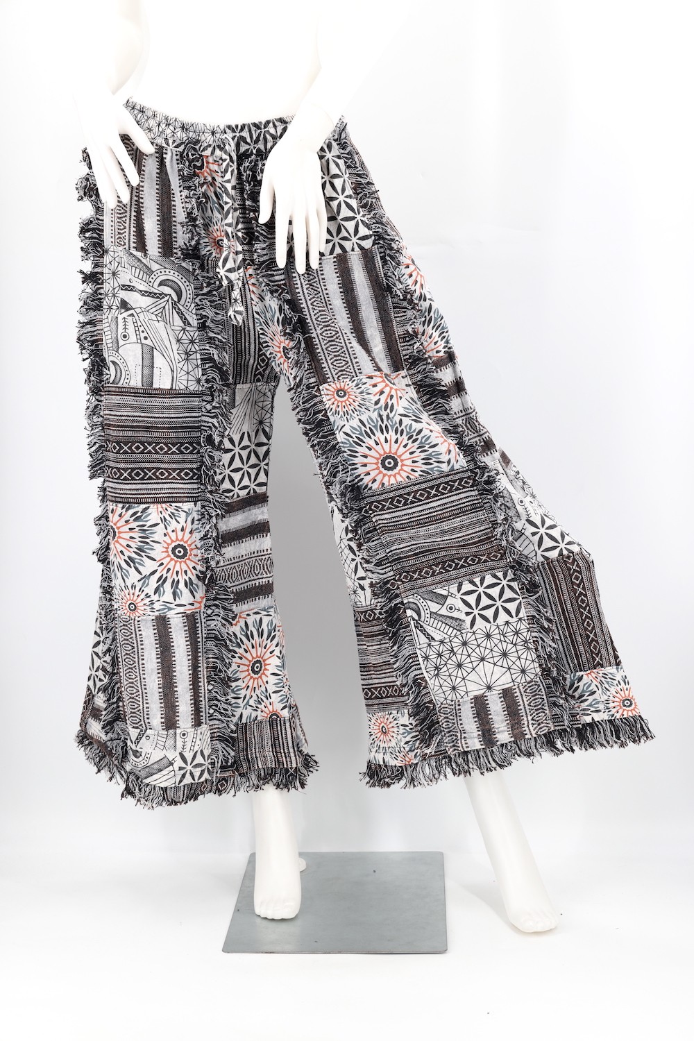 These unique gheri mix hippie patchwork wide leg fringe pants are crafted from the finest 100% Natural Handwoven Cotton by some of the most skilled artisans. Elevate your style instantly with these extraordinary and highly fashionable Pants, which are suitable for almost any occasion and ensure you look your best every time.