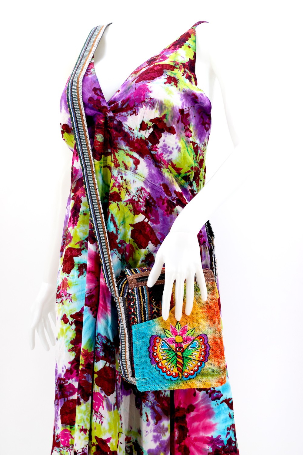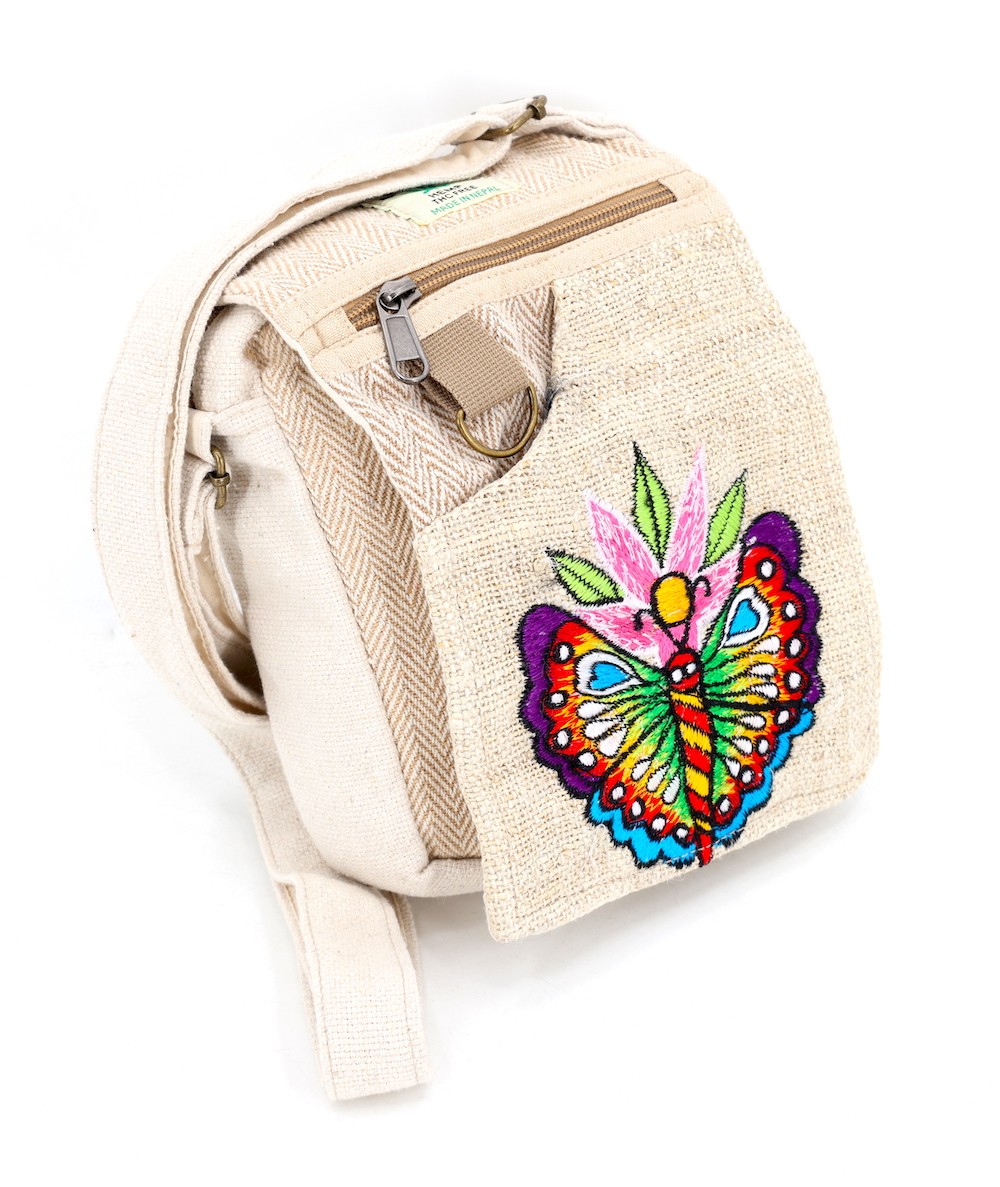 A versatile and beautiful Butterfly hand embroidery 100% Natural THC Free Himalaya Hemp Fabric stitched by talented artisans in Himalaya Range of Nepal. Support underprivileged Nepalese communities with your purchase. Hand wash or Machine wash separately in cold water.