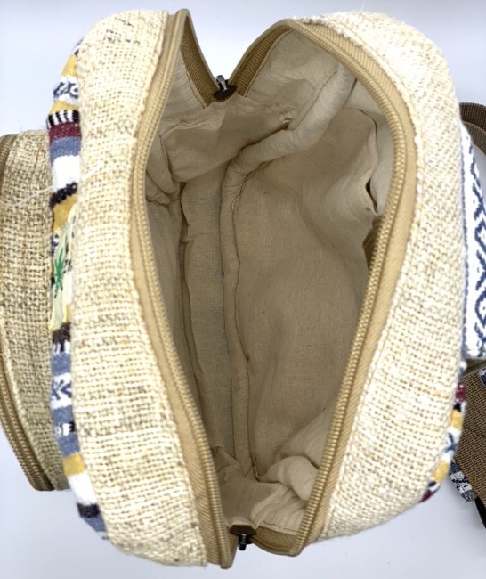 • At Himalaya Handmade we are known for creating the modern single strap mini Sling hemp backpacks that are now available in profusion of design and colors. Our Mini backpack with multicolor Aztec pattern is made from eco-friendly natural hand-woven hemp and cotton fabric and it is beautifully handcrafted in Nepal, they are high quality and this backpack has everything you need. You will not find higher quality anywhere else. All of our bags are sourced from the mountainous regions of Nepal and are all 100% Handmade. This backpack features are it has a unique multi colored pocket. Handcrafted this Backpack Includes, tablet compartment – fits up to large tablet, 3 separate compartments with 2 pockets being zippered, extremely strong construction, strong original two metal zippers on main compartment, soft padded straps and made from 100% Hemp, the entire bag is extremely strong but also breathable. Color of these bag will not be exact because arrangement of the pattern and these bags are handmade so in color can be slightly different. The image for display is just one of many designs that are available. Every bag is handmade and therefore unique.