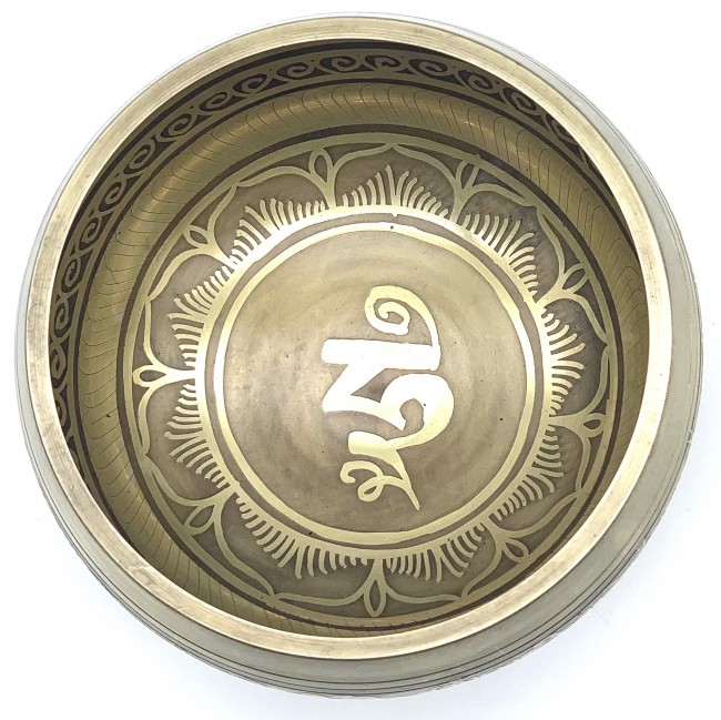 • Buddhist Tibetan Om engraved in the center, surrounded by Buddhist themed engraving on the inside and the Buddhist Chant outside