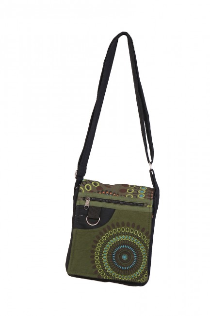 Pure 100% cotton passport bag is handmade in Nepal with great Mandala print. This passport bag has 3 compartment with zippers, in the main compartment it has secret pocket with zippers and it has adjustable strap. It is supremely versatile and fashionable. This bag is suitable for carrying passport, mobile phone and mini iPad. It is fair trade product.