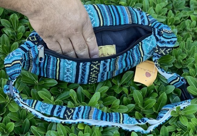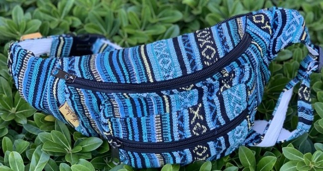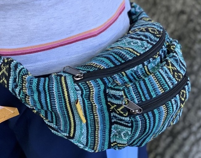 100% pure Hand woven Gheri Cotton Multi Torquoised Color money belt (Fanny Pack) handmade in Nepal. This product can be use by both men and women west or can be worn lower on the hips. This bag has charming features, it is practical and versatile because it can be belt bag/fanny pack /shoulder bag, it has 3 pockets with zippers, the belt is adjustable 29 - 45 inch which can make shorter and longer as well. It is fair trade product. Size: 29 x14x10 cm (12.5x5.5x4 inches)